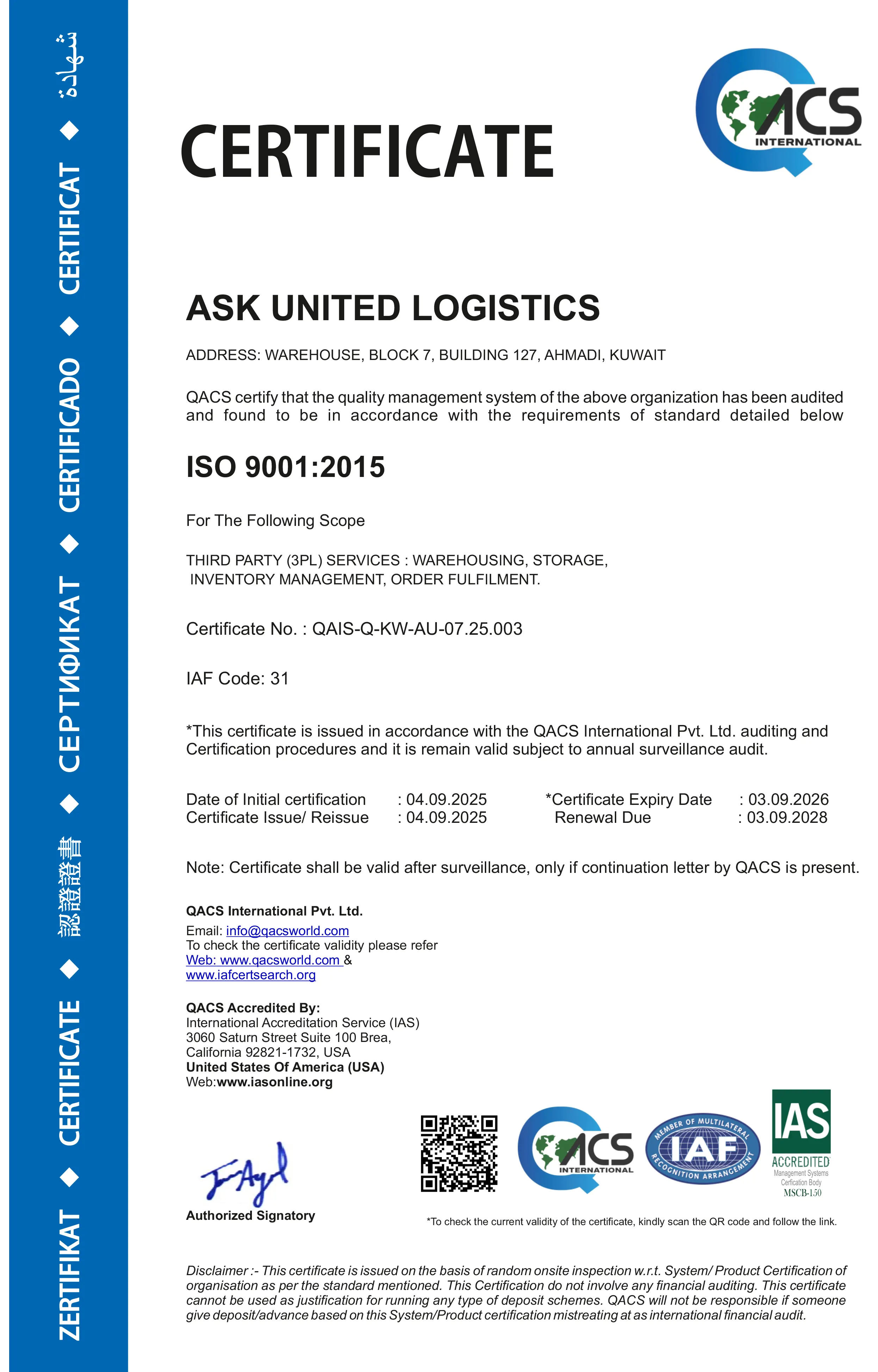 - Compliance with Kuwait regulations